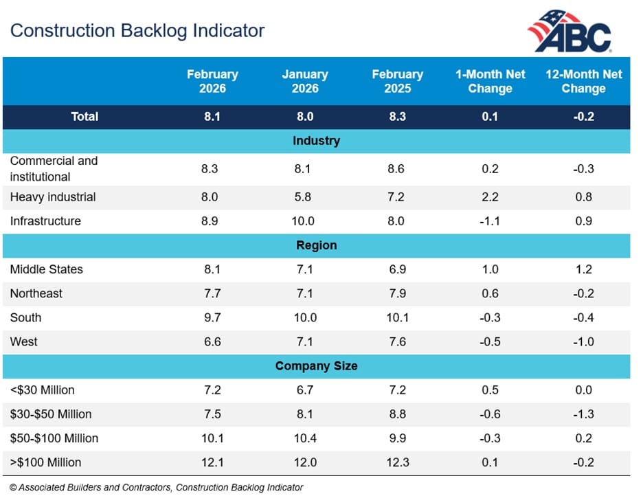 Construction backlog indicator rebounds in February (ABC)